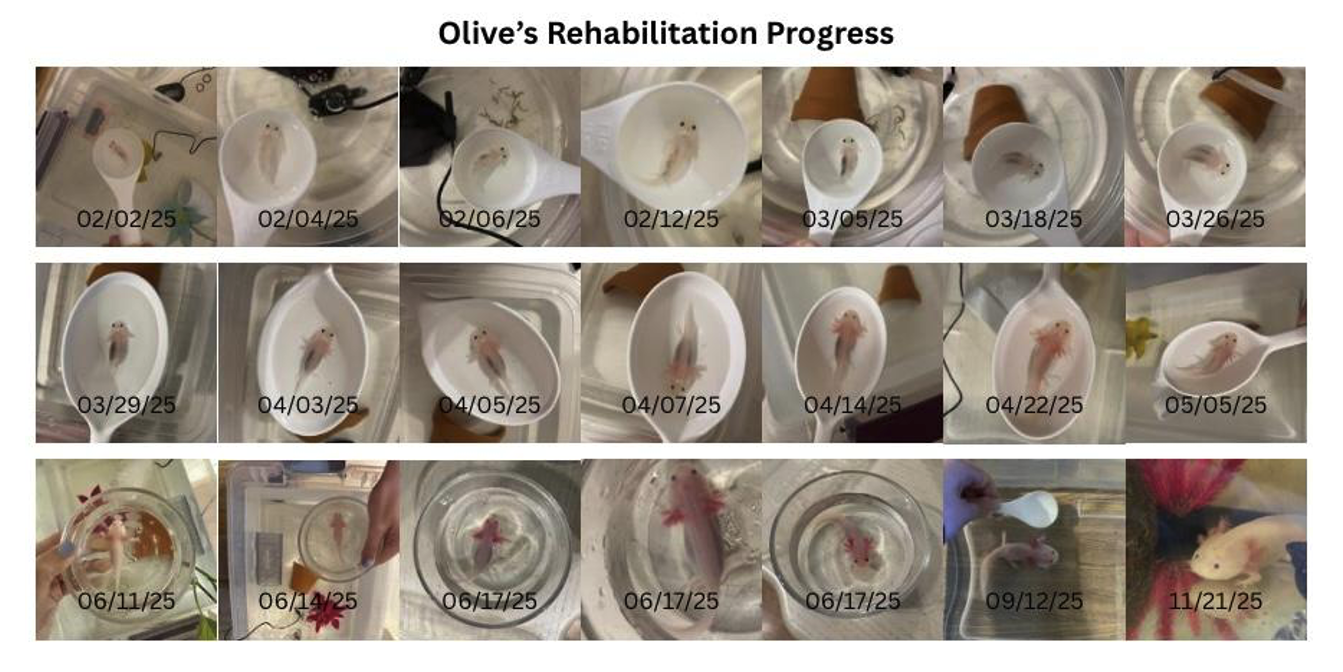 Share: Spread Olive’s story on social media to raise awareness about axolotl rescue needs.